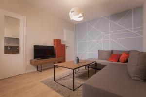 This spacious apartment comprises one living room along with two separate bedrooms furnished with four beds in total. Guests can enjoy a fully equipped kitchen featuring a stovetop, refrigerator, microwave and kitchenware alongside dining facilities. Additional in-room comforts include air conditioning, bed linen, towels, ironing facilities including iron and board, washing machine, sofa bed, wardrobe or closet space, laptop-sized safe, heating system as well as slippers provided for convenience.