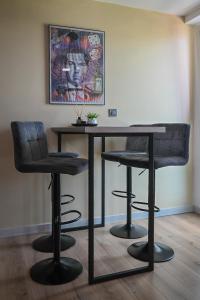 The property lies within close proximity to key landmarks such as Macedonia Square at 4.7 km and Kale Fortress only 4.9 km away. Skopje International Airport is situated 19 km from the apartment, providing accessibility for travelers.