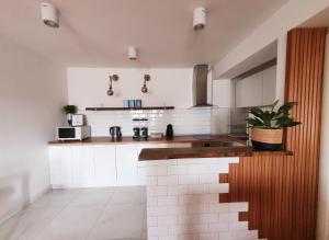Guests have access to a fully equipped kitchen boasting a stovetop, oven, refrigerator, microwave coffee machine plus tea-and-coffee-making facilities alongside kitchenware to prepare meals conveniently within the unit’s dining area. Additional conveniences include free parking on site, lift access directly to the apartment, smoke detectors, fire extinguishers, an airport shuttle service available for an extra charge, outdoor furniture on both balcony/patio spaces, sun terraces for relaxation, cable TV channels via flat-screen television sets, bedside sockets for charging devices plus WiFi coverage throughout all areas.