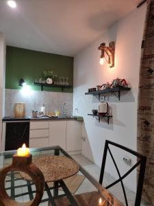 Accommodation comprises one separate bedroom along with a living room that includes two beds, a sofa bed, and a work desk. The fully equipped kitchen contains modern appliances such as a stovetop, refrigerator, electric kettle, tea and coffee making facilities, plus a dining table for comfortable meals indoors or on the terrace overlooking garden views.