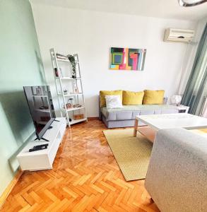 Very clean, spacious apartment with two comfortable sofas and a small balcony where clothes dried quickly. The host was kind, accommodating, and helped with everything including early check-in and providing a crib, refreshments were left in the fridge. Parking was available next to the building despite being tight, which was convenient for downtown Skopje. The location was quiet at the end of a pedestrian street but close enough to reach the main square within minutes on foot. The apartment had a smart TV with English channels, good air conditioning for summer, coffee in the cupboard, and it was pet friendly.