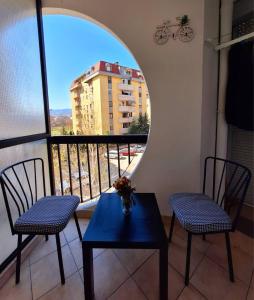 The property lies within close proximity to several key landmarks, including Macedonia Square at 5.6 km, Stone Bridge at 5.4 km, and the Museum of the City of Skopje at 4.8 km. Millennium Cross is further away at a distance of 19 km, while Skopje International Airport is located 18 km from the apartment.