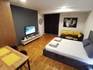 The apartment stands approximately 21 km from Skopje International Airport, with paid airport shuttle services available to ensure easy transfers. Guests can also enjoy amenities such as a casino on site, a coffee shop for casual refreshments, as well as a minimarket within the premises.