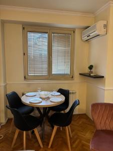 Close to Macedonia Square with free parking available. The apartment is clean and well equipped with air conditioning and kitchen facilities. Communication with the host was quick and helpful. Located near Old Bazaar, Stone Bridge, and main square yet very quiet. Bakery downstairs offers fantastic bread and cakes. Shower water pressure is good despite minor quirks.