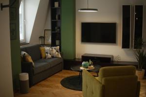 The air-conditioned apartment offers a private entrance leading to one bedroom, a living room with two beds including a sofa bed, and one bathroom equipped with complimentary toiletries such as shampoo and body soap. Guests will find an iron with ironing board, wardrobe, work desk, seating area, washing machine as well as hardwood flooring throughout the unit.