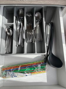 Inside the apartment, the accommodation includes air conditioning and heating alongside hardwood flooring for comfort. Guests can enjoy two beds in total as well as an equipped kitchen containing a stovetop, oven, refrigerator, dishwasher, kitchenware, tea and coffee making facilities, and a dining table for meals at home. The bathroom features a walk-in shower without steps complemented by complimentary toiletries such as body soap and shampoo plus towels are provided.