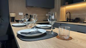 Ogni appartamento è dotato di aria condizionata e angolo cottura completamente attrezzato con frigorifero, piano cottura, forno, macchina per il caffè, bollitore elettrico e tutto il necessario per preparare i pasti. Gli spazi living comprendono un’area salotto con divano letto o divano normale oltre a TV schermo piatto. Le camere da letto dispongono ciascuna di due letti insieme a scrivanie da lavoro, armadi o guardaroba, piegapantaloni, cassaforte personale e ferro da stiro. I bagni sono completi di docce o vasche da bagno con set cortesia incluso shampoo e sapone per il corpo, vengono inoltre fornite pantofole per maggiore comfort.