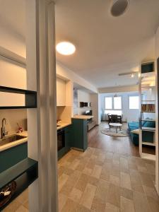 The air-conditioned apartment contains two beds along with a fully equipped kitchen that includes an oven, dishwasher, coffee machine, and dining table for meals at home. Guests will find a flat-screen TV in the living area as well as heating, a washing machine, and a sofa bed.
