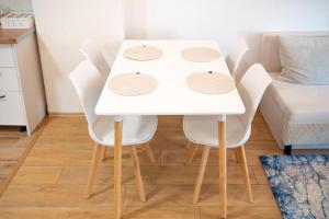 The apartment was modern, clean, and comfortable with a well-equipped kitchen and fast air conditioning. It offered free parking and a quiet location just a short walk from the city center, bus, and train stations. The building was peaceful with nice wood floors and fresh-smelling interiors. A shop located downstairs added convenience during the stay.