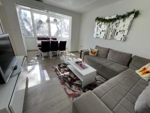 The apartment was modern, immaculate, and very clean. It offered a comfortable bed and bright rooms with a great view of the park. The location was perfect, situated close to the bus station and quiet surroundings. Kitchen facilities included filtered water, an oven, dishwasher, and complete cookware. Free parking was available behind the building.