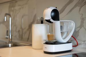 The accommodation comprises one bedroom with two beds, a living room furnished with a sofa and seating area, as well as one bathroom fitted with a bathtub or shower along with complimentary toiletries including shampoo and body soap. The fully equipped kitchen features an oven, refrigerator, dishwasher, coffee machine, tea and coffee making facilities plus kitchenware for dining convenience.
