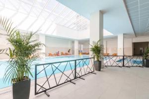 Inside the apartment, guests will find an array of amenities including a fully equipped kitchen with an oven, stovetop, refrigerator and kitchenware. The unit also provides a flat-screen TV with streaming services, heating facilities, air conditioning, a washing machine and a baby cot or crib.