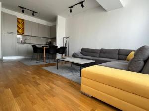 Uvnitř apartmánu najdete klimatizaci a dřevěnou podlahu po celém prostoru. Obývací část zahrnuje dvě postele - rozkládací pohovku a běžnou postel - spolu s šatní skříní, žehlicím zařízením, topením, pračkou, televizorem s plochou obrazovkou a kabelovými kanály. Pro pohodlí hostů jsou k dispozici ručníky i ložní prádlo.
