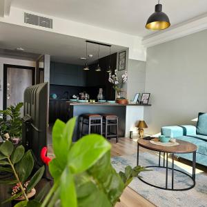 The apartment features one bedroom with two beds, a fully equipped kitchen including a stovetop, refrigerator, oven, dishwasher and coffee machine, plus a dining table. Additional in-room amenities include air conditioning, heating, wardrobe, seating area with sofa and sofa bed, washing machine, iron and clothes drying rack. The bathroom comes with complimentary toiletries such as shampoo, conditioner and body soap along with slippers and hairdryer, it also includes a spa bath option.