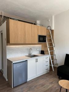 This air-conditioned unit includes one bedroom with two beds, accompanied by a bathroom fitted with a shower and hairdryer. Guests can prepare meals using the full kitchen which comprises kitchenware, microwave, electric kettle, refrigerator, stovetop, and coffee machine. Additional room amenities encompass ironing facilities including an iron and ironing board, bed linen, sofa bed options, wardrobe space, heating along with clothes drying rack on hardwood/parquet flooring.