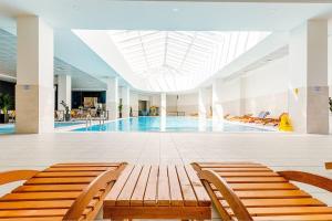 Guests have access to various services including a bar lounge area where they can unwind after exploring the city or relaxing in the kids’ pool or indoor swimming pool available throughout the year. Other features include free WiFi coverage across all areas of the property plus ATM access on site, reception services operate around the clock offering express check-in/check-out options along with lift access to upper floors.