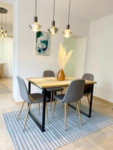 The accommodation comprises one bedroom with two beds, a living room with a sofa bed, and one private bathroom equipped with complimentary toiletries including shampoo, body soap, bidet, toilet, hairdryer as well as a bathtub or shower. Guests can prepare meals in the fully equipped kitchen featuring an oven, stovetop, refrigerator, dishwasher, toaster and electric kettle alongside tea and coffee making facilities. Additional in-room amenities include air conditioning with individual controls for the room heating system, a wardrobe, dressing room, washing machine, iron, clothes drying rack, non-feather pillows, tile/marble flooring combined with hardwood/parquet sections, bedside sockets plus linens such as bed linen and towels.