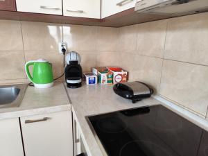 This air-conditioned apartment comprises one separate bedroom with two beds, a living room equipped with a sofa bed, and one bathroom featuring both bathtub or shower options along with toilet facilities. Guests can prepare meals in the full kitchen which contains an electric kettle, toaster, dining table, refrigerator, stovetop oven combination as well as coffee machine and tea making facilities. Additional in-room amenities include heating, iron, washing machine, work desk plus bed linen and towels.